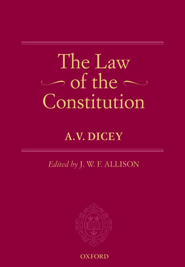 A.V. Dicey, University of Oxford, former Vinerian Professor of English Law, University of Oxford (1882-1909)Edited by J.W.F. Allison, Faculty of Law, University of CambridgeAlbert Venn Dicey (1835-1922) was Vinerian Professor of English Law at the University of Oxford and the pre-eminent constitutional lawyer of the nineteenth and early twentieth centuries. His ntroduction to the Study of the Law of the Constitution ran to eight editions in his lifetime and remains one of the canonical texts in the history of English constitutional law.
